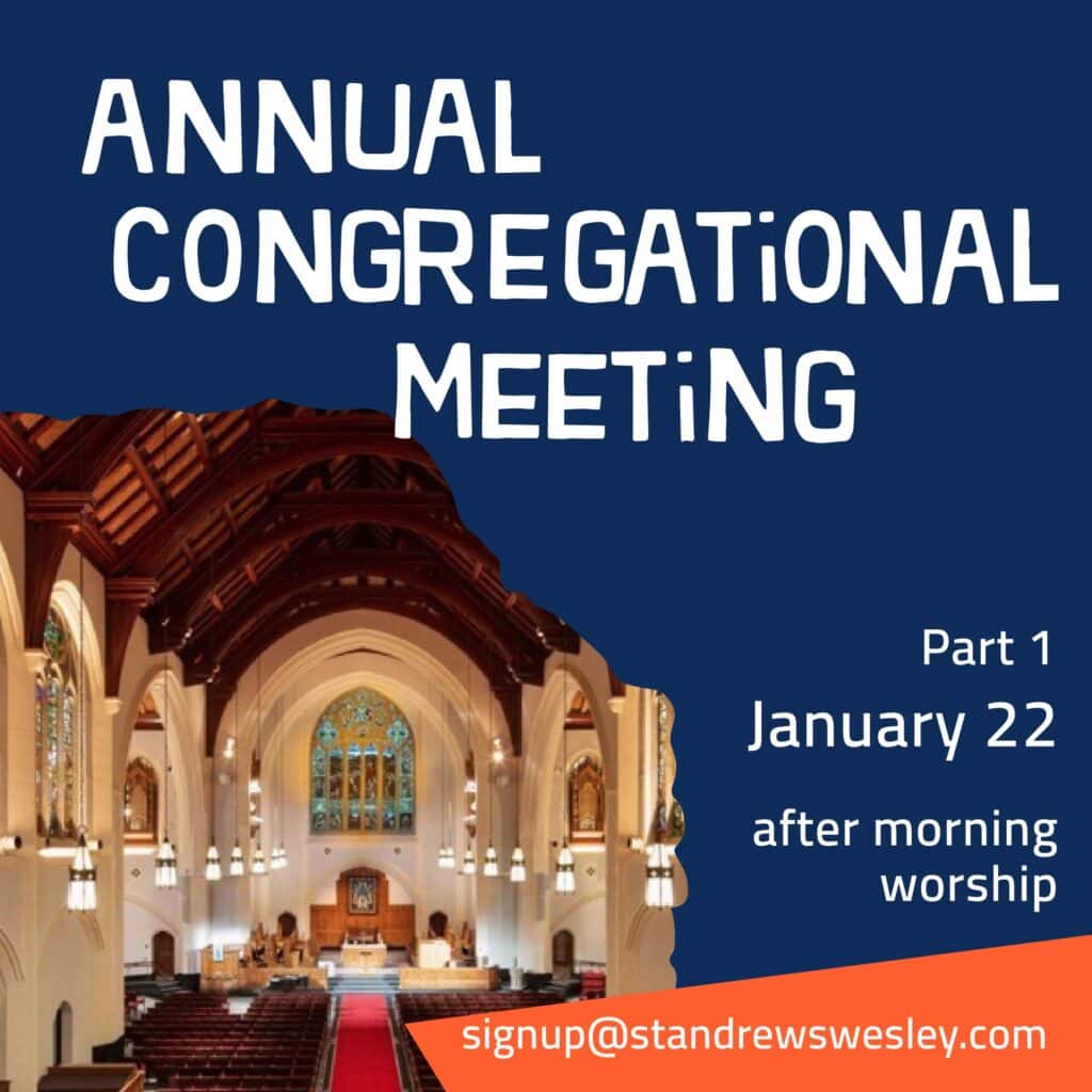 Sunday, Jan 22 after worship This meeting will take place in person, in the Sanctuary after worship. We will be discussing the 2023 budget.