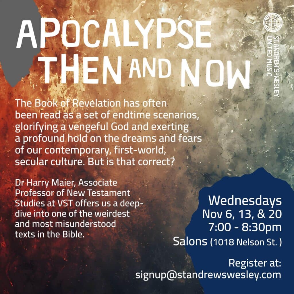 The Book of Revelation has often been read as a set of endtime scenarios, glorifying a vengeful God and exerting a profound hold on the dreams and fears of our contemporary, first-world, secular culture. But is that correct? Dr Harry Maier, Associate Professor of New Testament Studies at VST offers us a deep-dive into one of the weirdest and most misunderstood texts in the Bible.