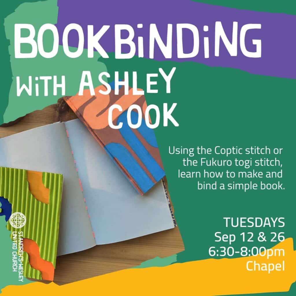 Using the Coptic stitch or the Fukuro togi stitch, learn how to make and bind a simple book and then start playing with giving importance to the unimportant. What lives in the margins of your life and how might this book help open you to the gifts that live there?