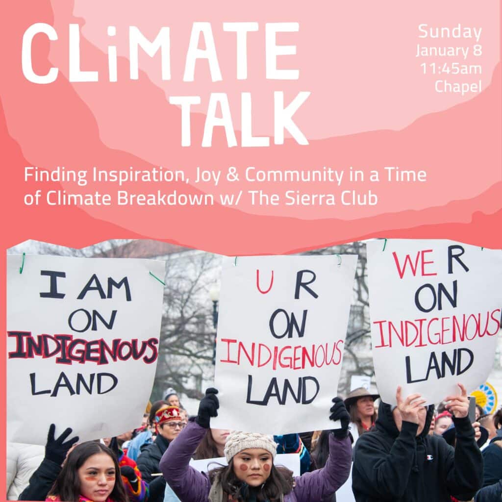 Where can we find a fresh wellspring of hope and possibility in the midst of the climate crisis? A gathering with Sierra Club BC leaders Flossie Baker & Ascher Goodman. Learn and be inspired by Sierra Club’s unique mission in British Columbia and how to be part of it. Through video presentation and conversation we will explore the concept of Climate Justice. We will begin to see how Indigenous Ways of Knowing is at the heart of the way forward.