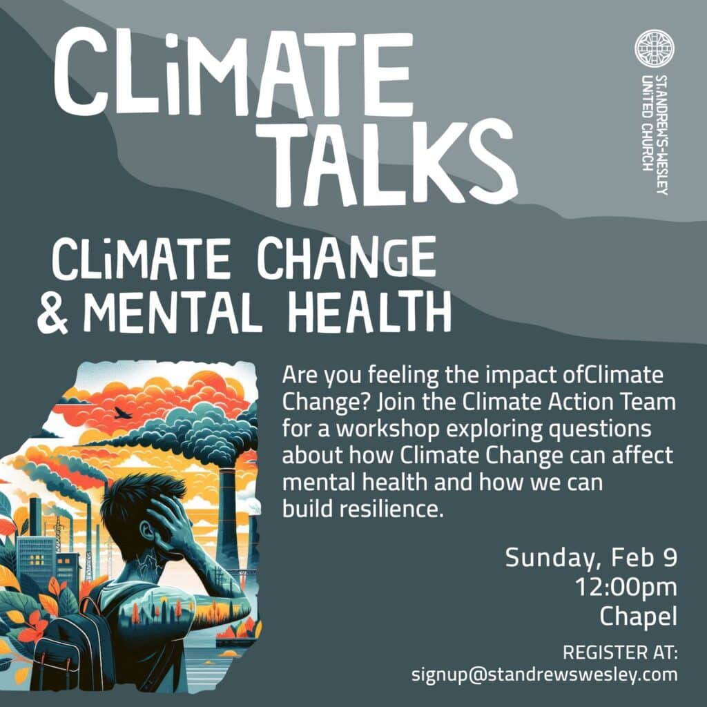 Are you feeling the impact of Climate Change? Join the Climate Action Team for a workshop exploring questions about how Climate Change can affect people’s mental health and how we can build resilience.