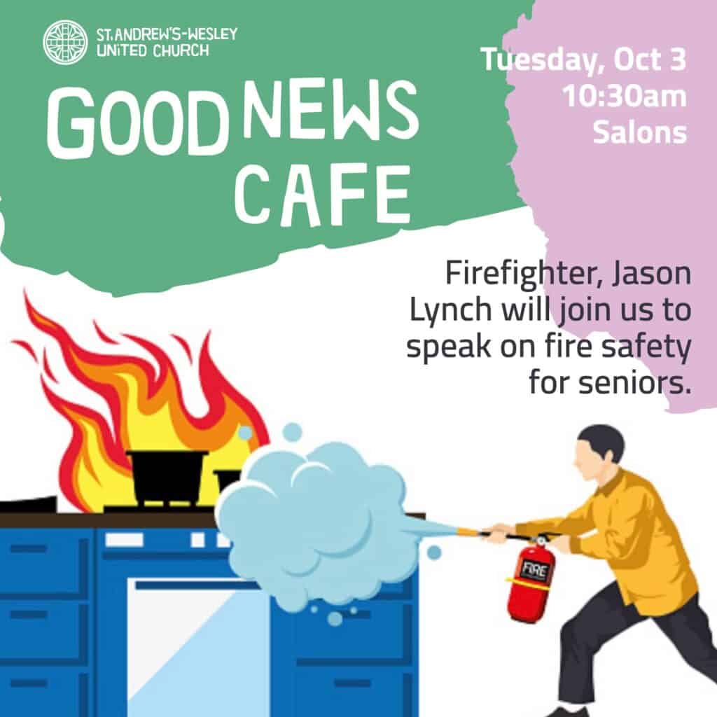 In the Salons (1018 Nelson St.). This week, join the Good News Cafe and firefighter, Jason Lynch who will be sharing tips on fire safety for seniors.