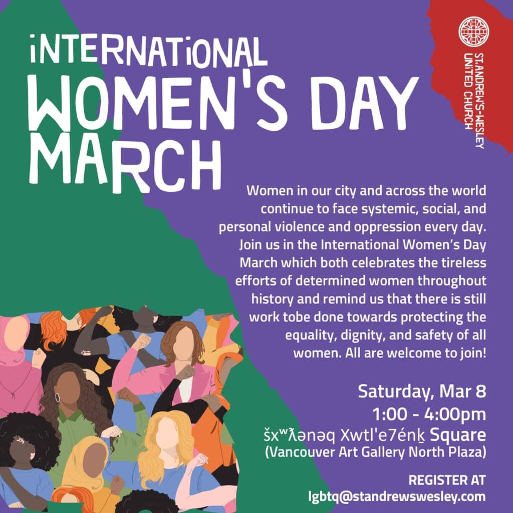 Join us in the International Women’s Day March in Vancouver! It is as essential as ever that we stand for and with all women — trans women, disabled women, queer women, BIWOC, and immigrant women. Women in our city and across the world continue to face systemic, social, and personal violence and oppression every day. This march is both a celebration of the tireless efforts of determined women throughout history and a reminder that there is still work to be done towards protecting the equality, dignity, and safety of all women. All are welcome to join.