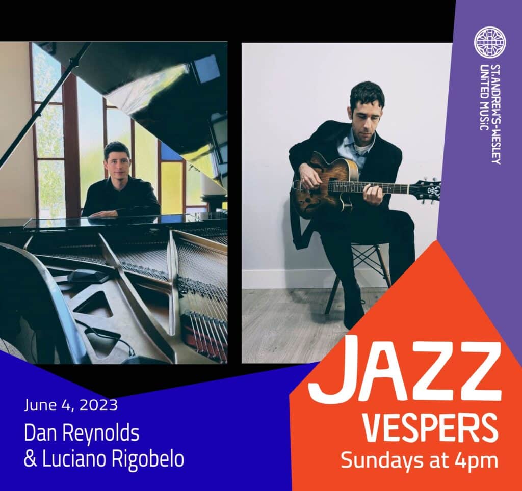 Join us this Sunday, June 4th at 4pm, where the spirit meets jazz. Featuring Dan Reynolds and Luciano Rigobelo