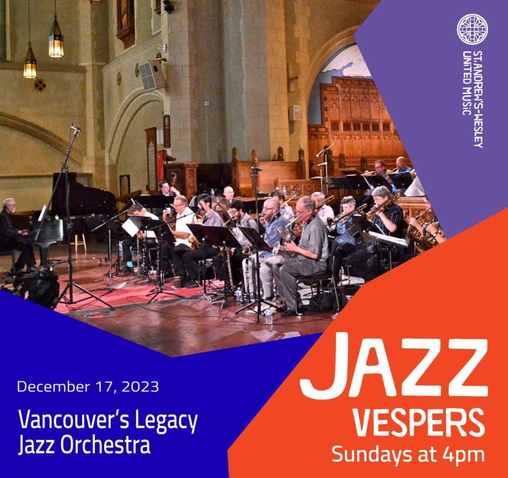 Join us this Sunday, December 17th at 4pm, where the spirit meets jazz. Featuring Vancouver’s Legacy Jazz Orchestra.
