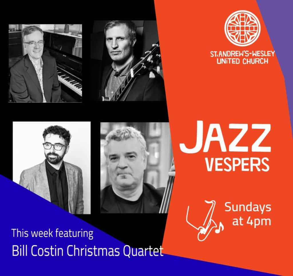 Join us on Sunday, November 27th at 4pm, where the spirit meets jazz. Featuring Bill Costin Christmas Quartet.