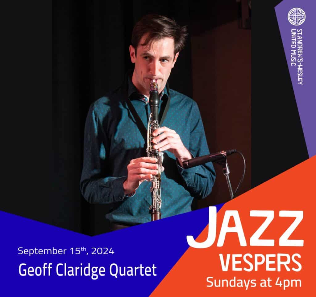 Join us on Sunday, September 15th at 4pm, where the spirit meets jazz. Featuring Geoff Claridge Quartet.