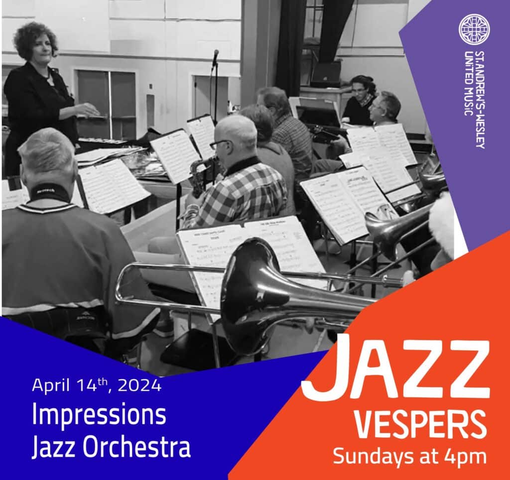 Join us on Sunday, April 14th at 4pm, where the spirit meets jazz. Featuring Impressions Jazz Orchestra.