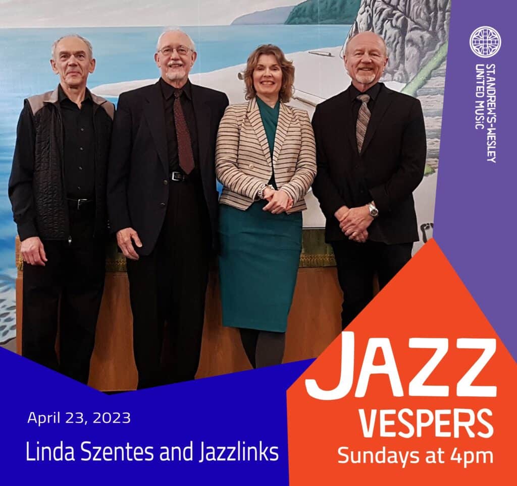 Join us on Sunday, April 23rd at 4pm, where the spirit meets jazz. Featuring Linda Szentes and Jazzlinks.