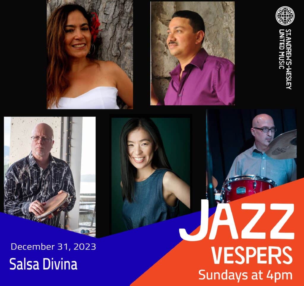Join us as we ring in the new year with some toe tapping lively music on Sunday, December 31st at 4pm, where the spirit meets jazz. Featuring Salsa Divina.