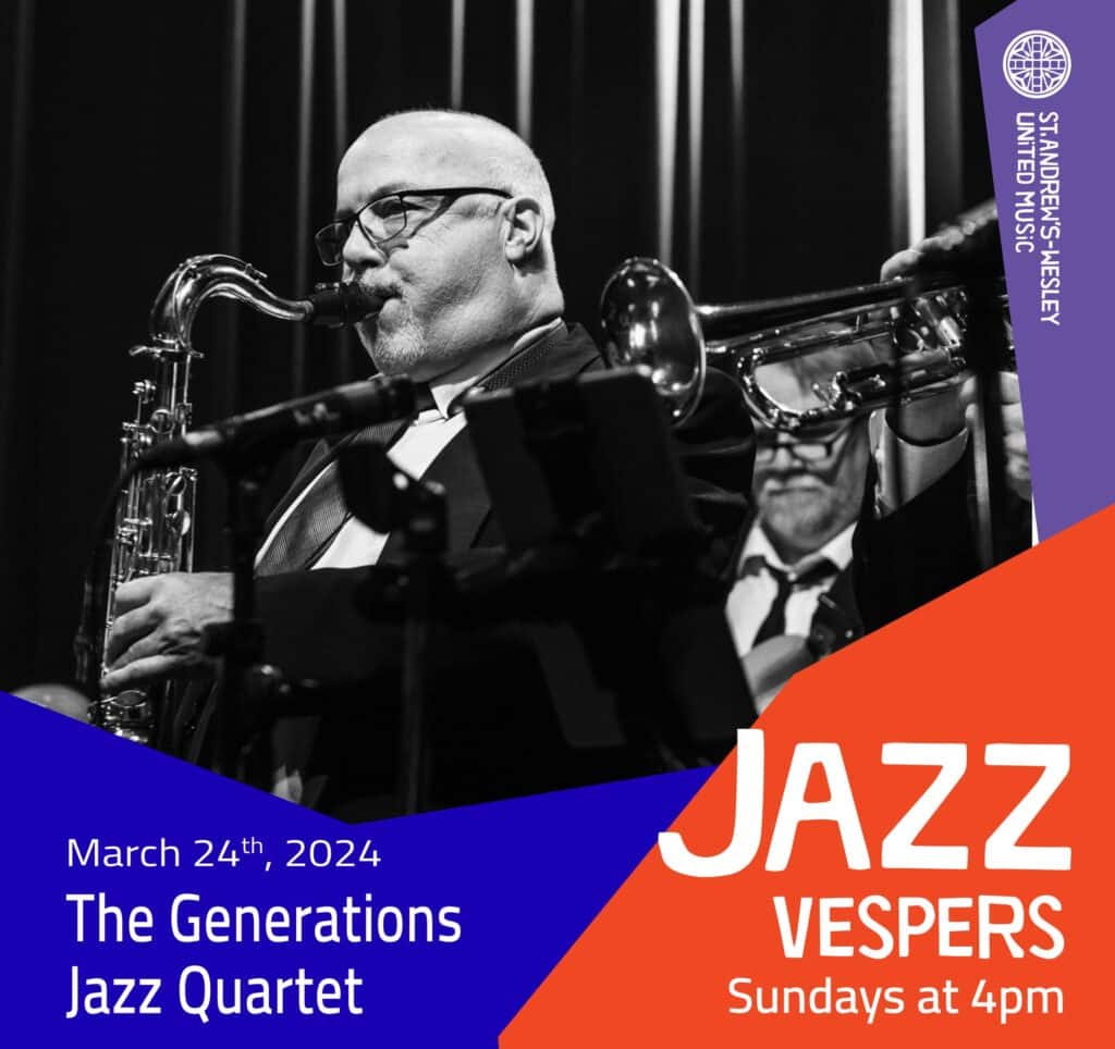 Join us on Sunday, March 24th at 4pm, where the spirit meets jazz. Featuring The Generations Jazz Quartet.