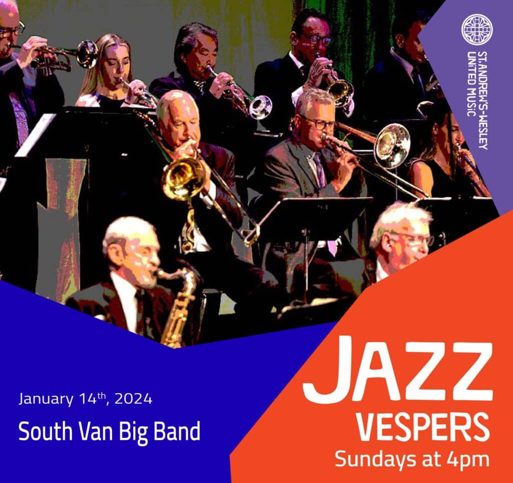 Join us on Sunday, January 14th at 4pm, where the spirit meets jazz. Featuring The South Van Big Band.