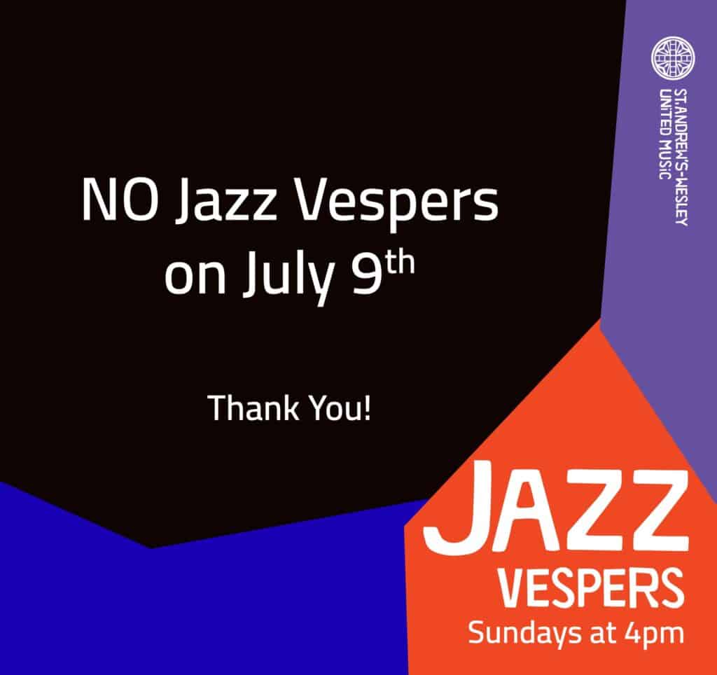 Apologies for any inconvenience, there is NO Jazz Vespers on Sunday, July 9th.