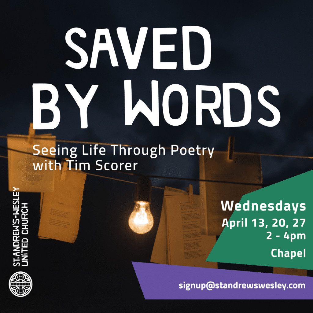 Join Tim Scorer in three two-hour sessions where we will let the work of fine poets guide us in our consideration of many things that are on our hearts and minds in Holy Week and early in the season of Easter. The character of the gatherings will be invitational, safe, reflective and affirming.