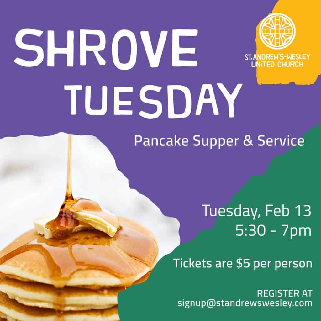 Join us for Pancake Supper and Service beginning at 5:30pm. Following the celebration, we will hold a brief Ash Wednesday worship, appropriate for all ages, that will help us shift into Lent.
