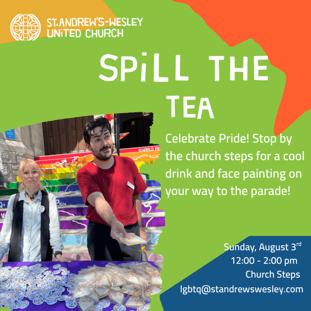 Celebrate Pride and stop by the church steps for a cool drink and face painting on your way to the Vancouver Pride parade! Please register at lgbtq@standrewswesley.com